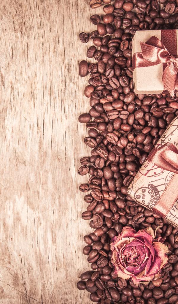 Wallpaper Bouquet of pink roses with coffee beans and a brown cup