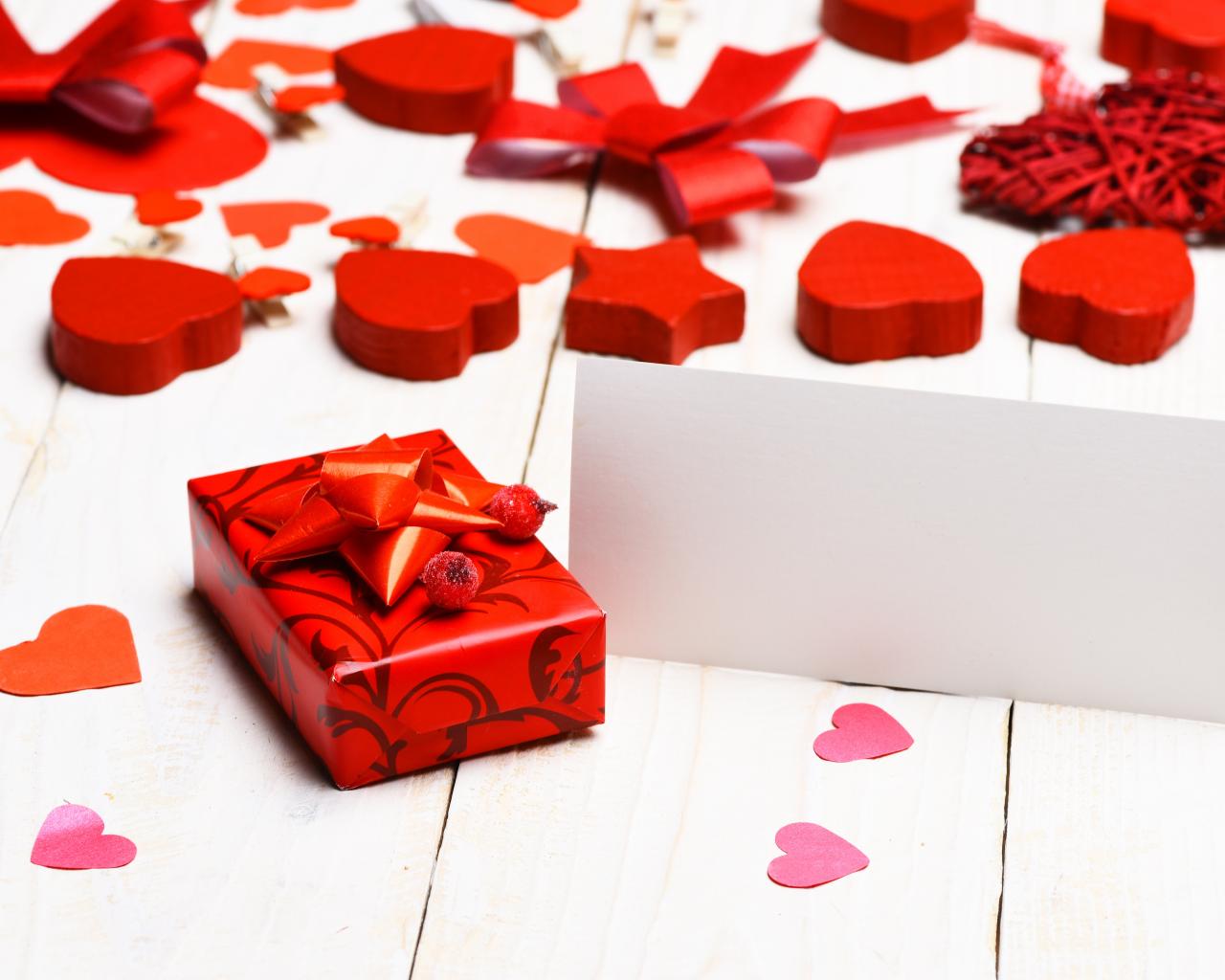 Wallpaper Red hearts and a gift for your beloved