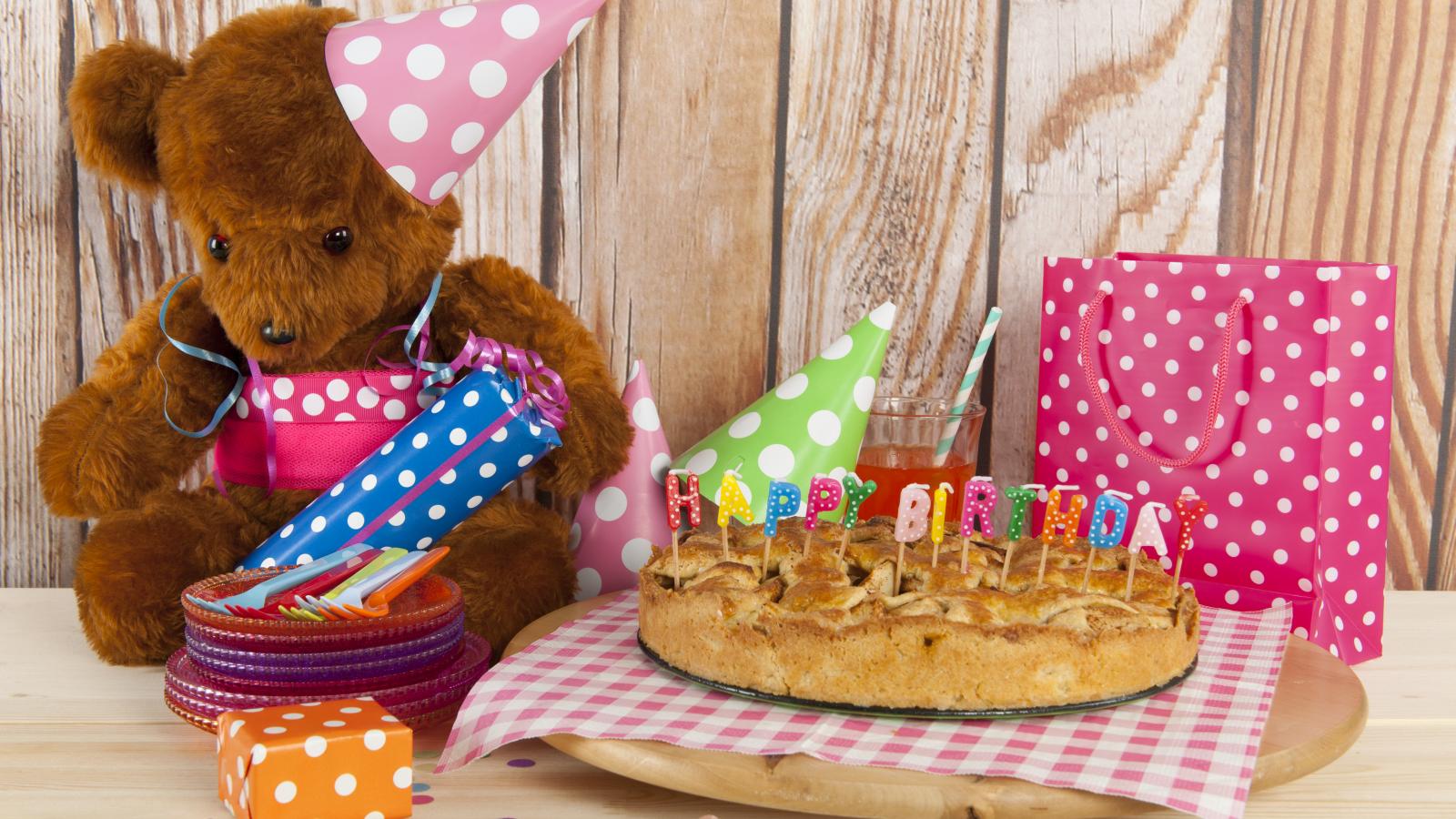 » Wallpaper Bear cub, pie and birthday gifts