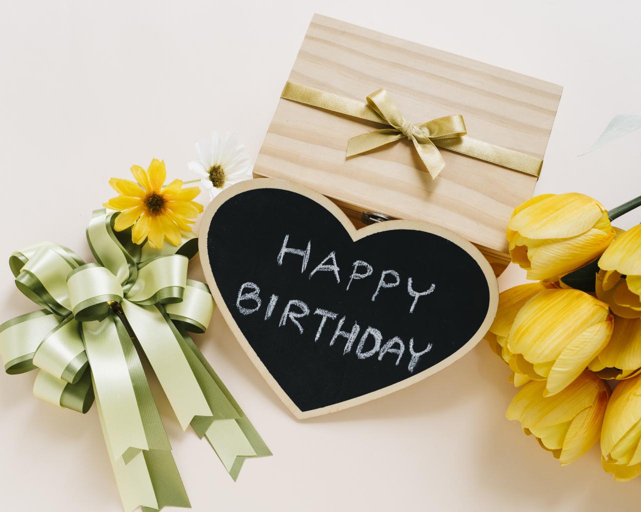 » Wallpaper Birthday gift and yellow tulips