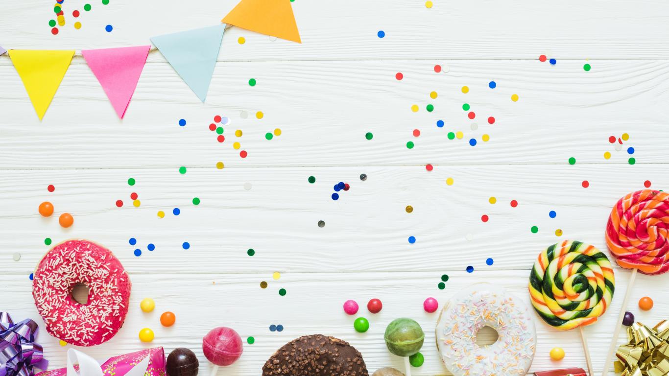 Wallpaper Donuts with icing and candy on a festive background