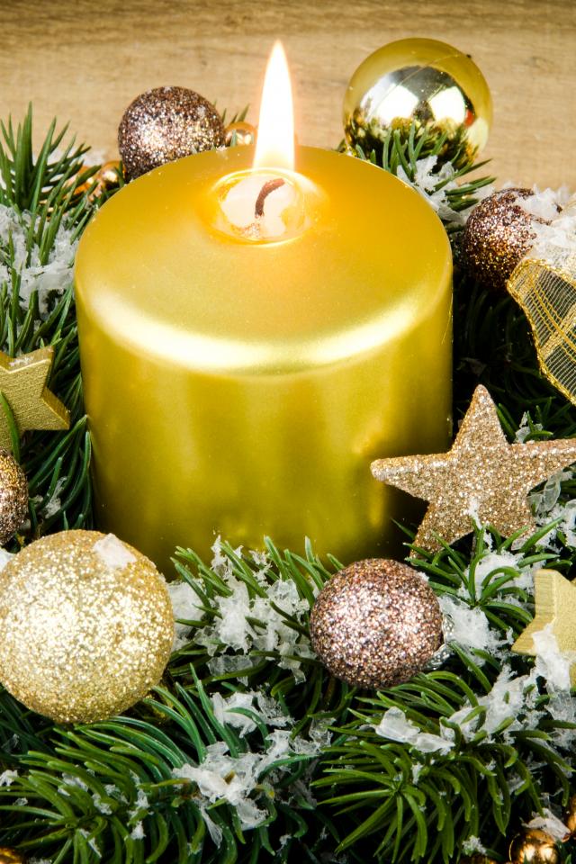 Wallpaper A beautiful burning candle and a wreath at Christmas
