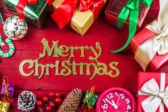Wallpaper A drawing with the inscription Merry Christmas on the table with Christmas decorations