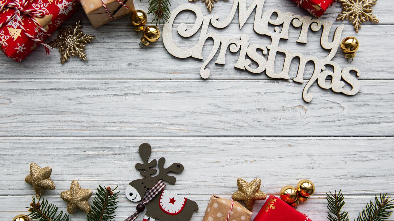 Wallpaper Christmas card on wooden background