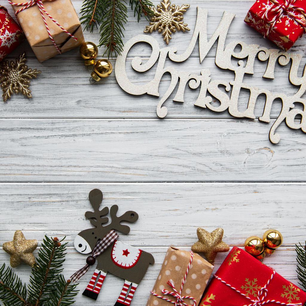 Wallpaper Christmas card on wooden background