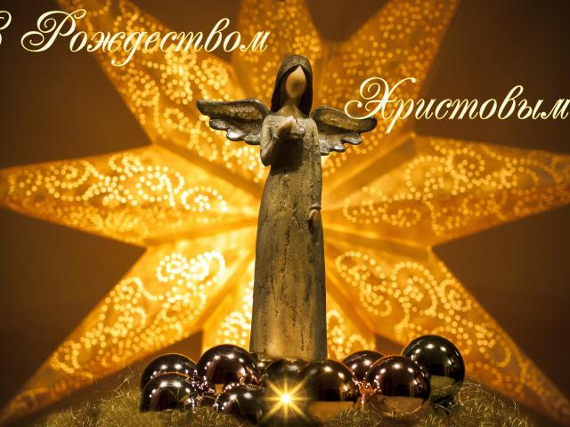 Wallpaper Angel with a star and the inscription Merry Christmas!