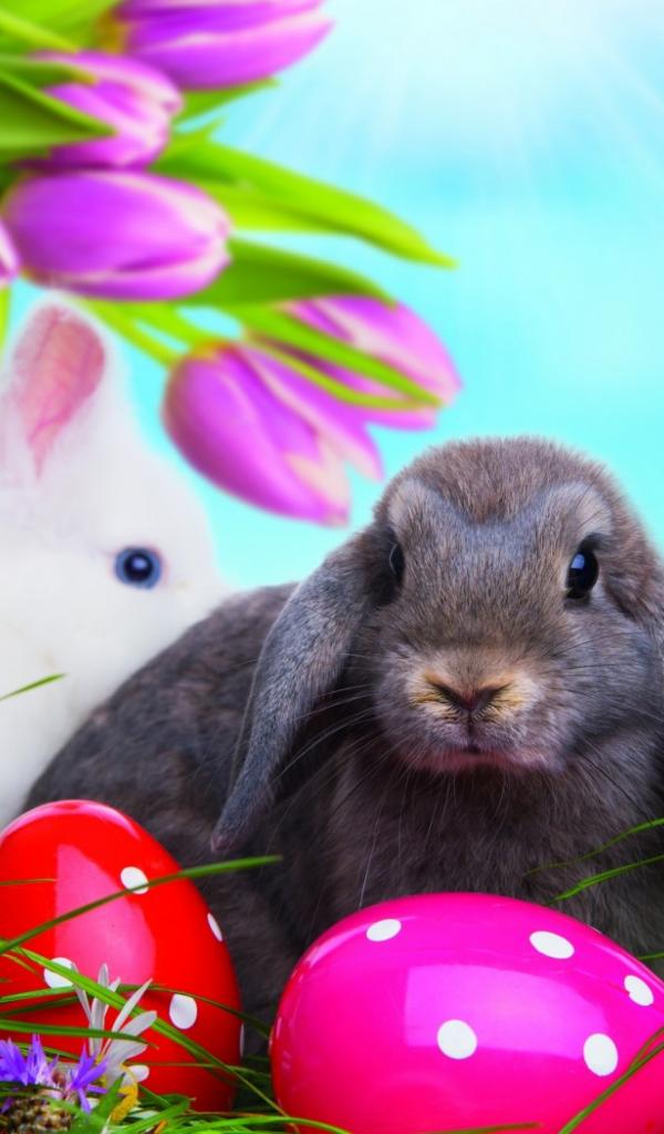 Wallpaper Multicolored eggs and Easter bunnies