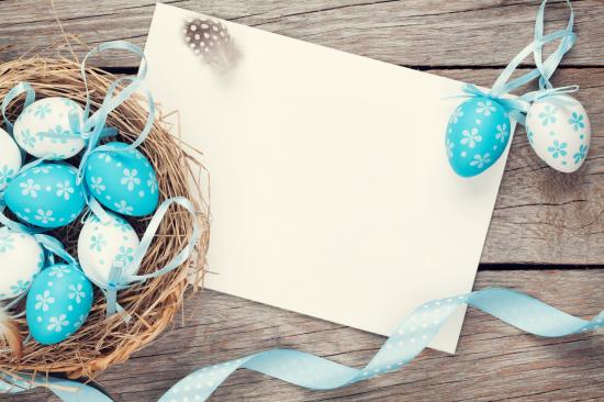 Wallpaper Blue easter eggs with ribbons, greeting card template
