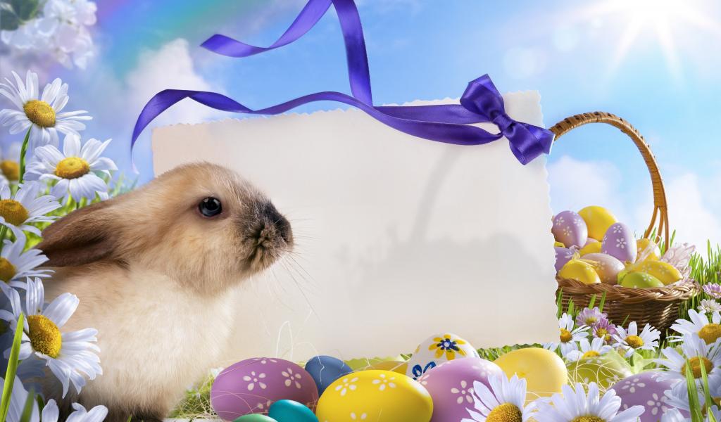 Wallpaper Beautiful greeting card with Easter and Easter cake and eggs on a white background
