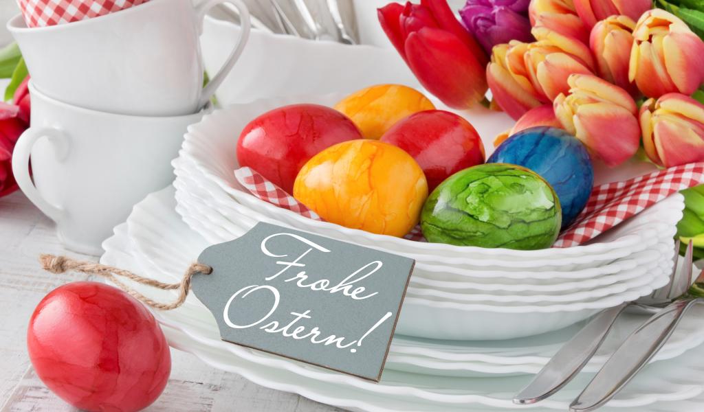 Wallpaper Easter eggs with an inscription Happy Easter in German