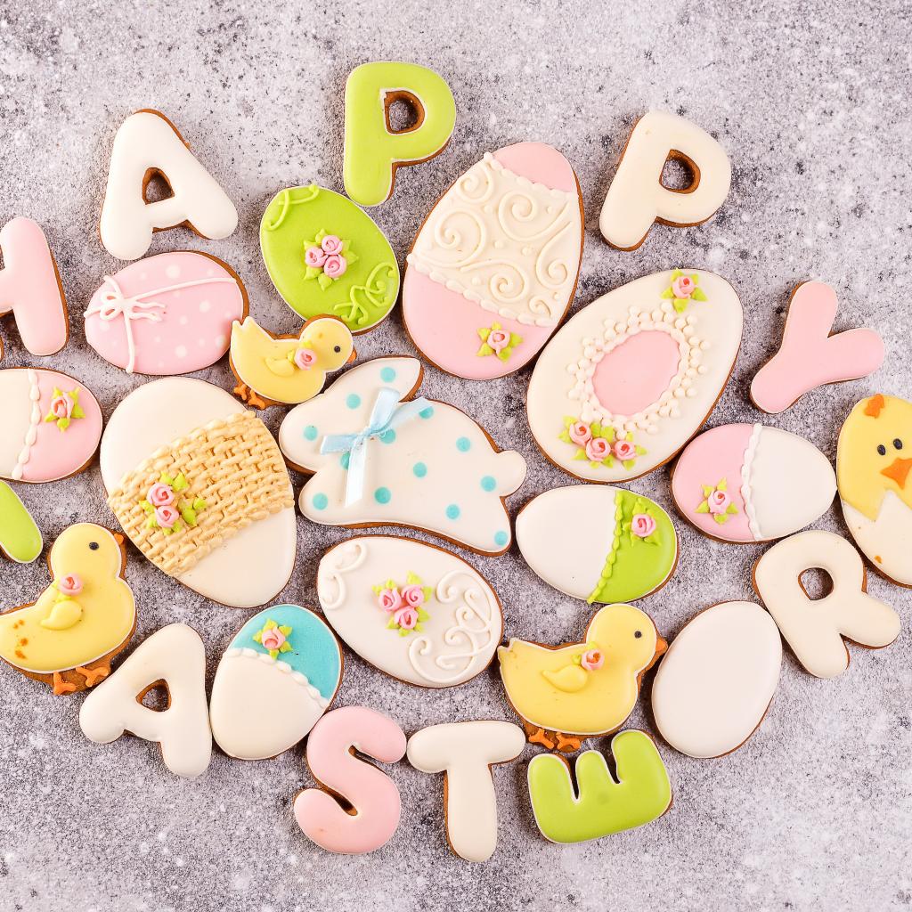 Wallpaper Happy Easter cookies on a gray table