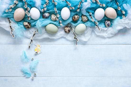 Wallpaper Eggs on fabric with willow branches on the table