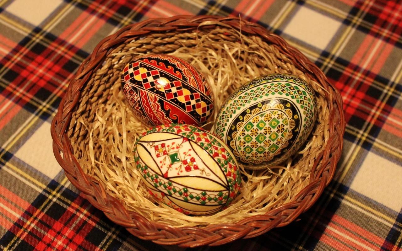 Wallpaper Beautiful puppies in a nest on a table for Easter