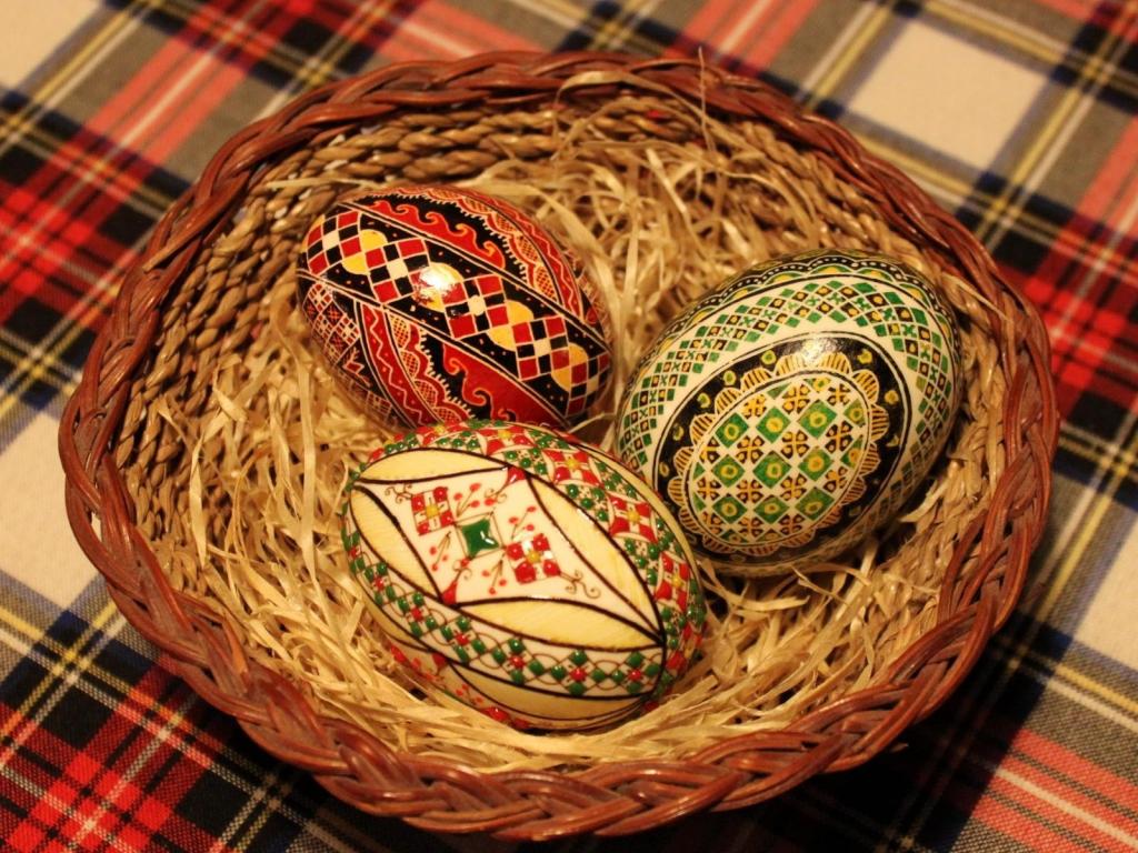Wallpaper Beautiful puppies in a nest on a table for Easter