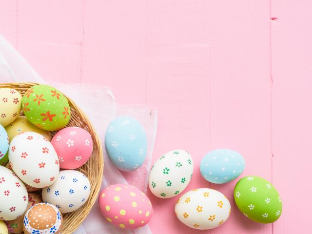 Wallpaper Multicolored easter eggs on pink background