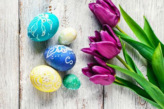 Wallpaper Beautiful painted eggs with tulips for Easter