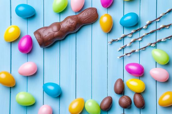 Wallpaper Chocolate easter sweets on blue background