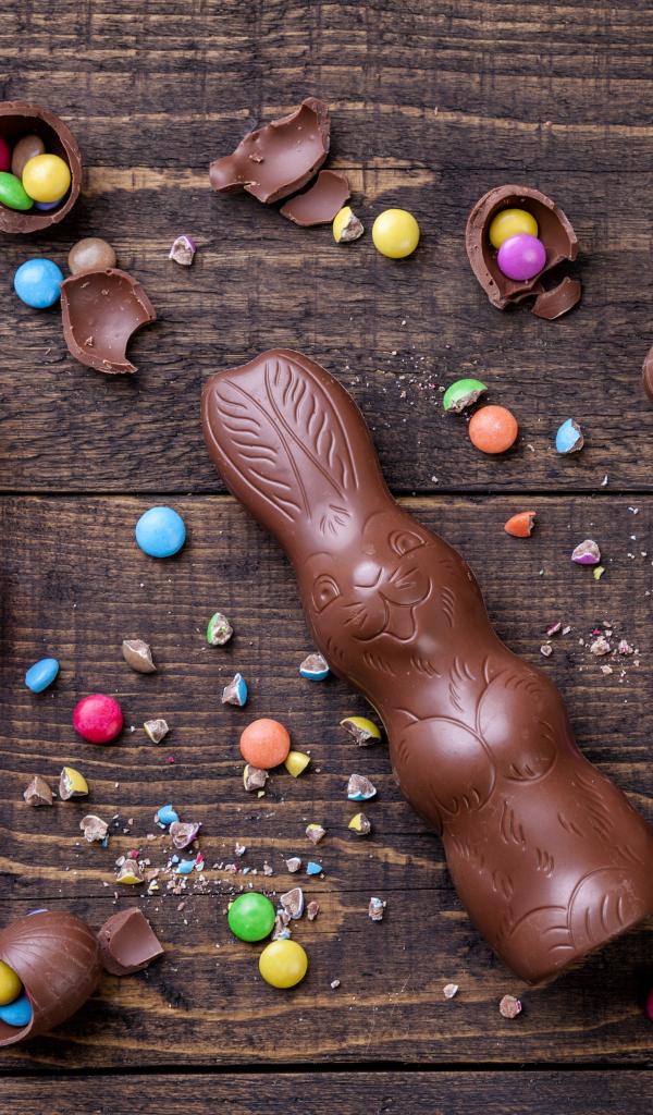 Wallpaper Chocolate bunny and colorful eggs for Easter