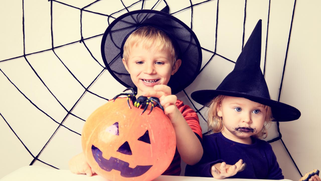 Wallpaper Little boy and girl in Halloween costumes