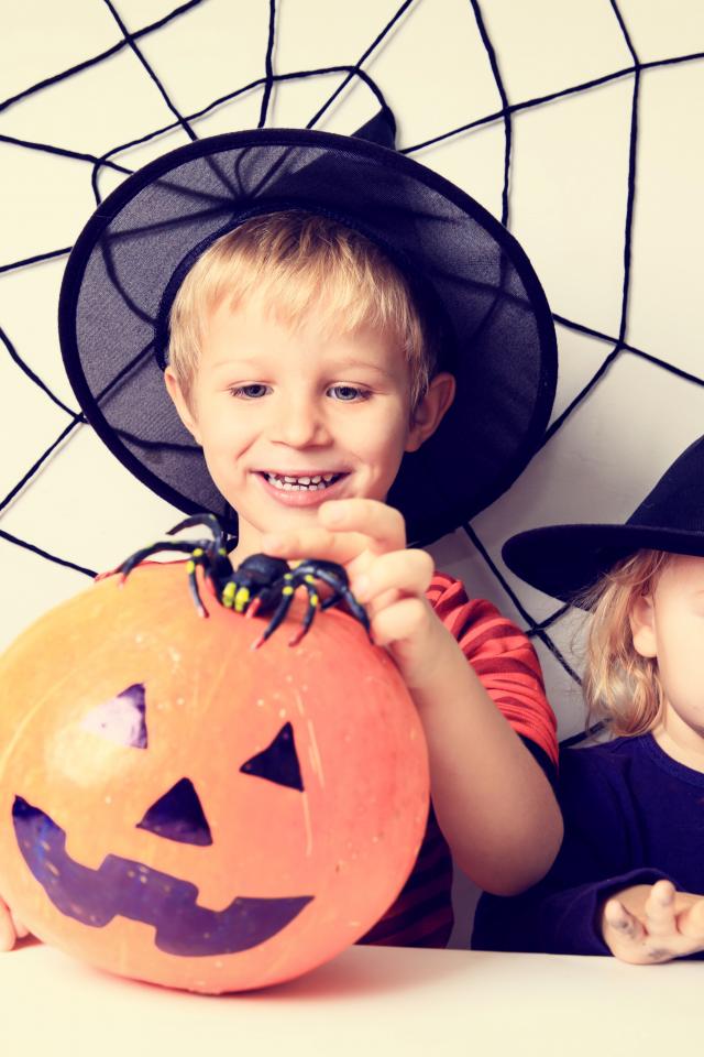 Wallpaper Little boy and girl in Halloween costumes