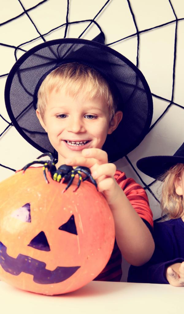 Wallpaper Little boy and girl in Halloween costumes