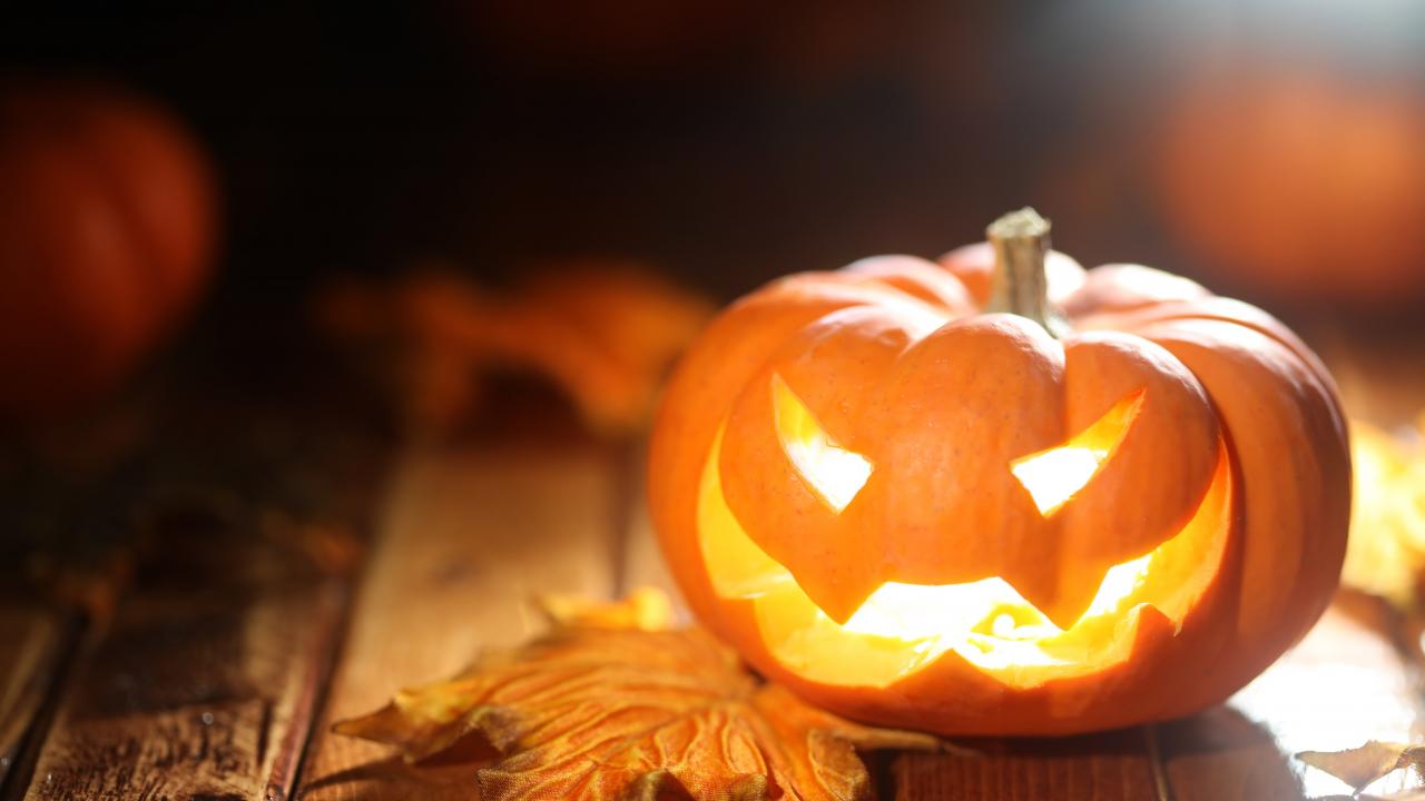 » Wallpaper Glowing Pumpkin on Halloween Table