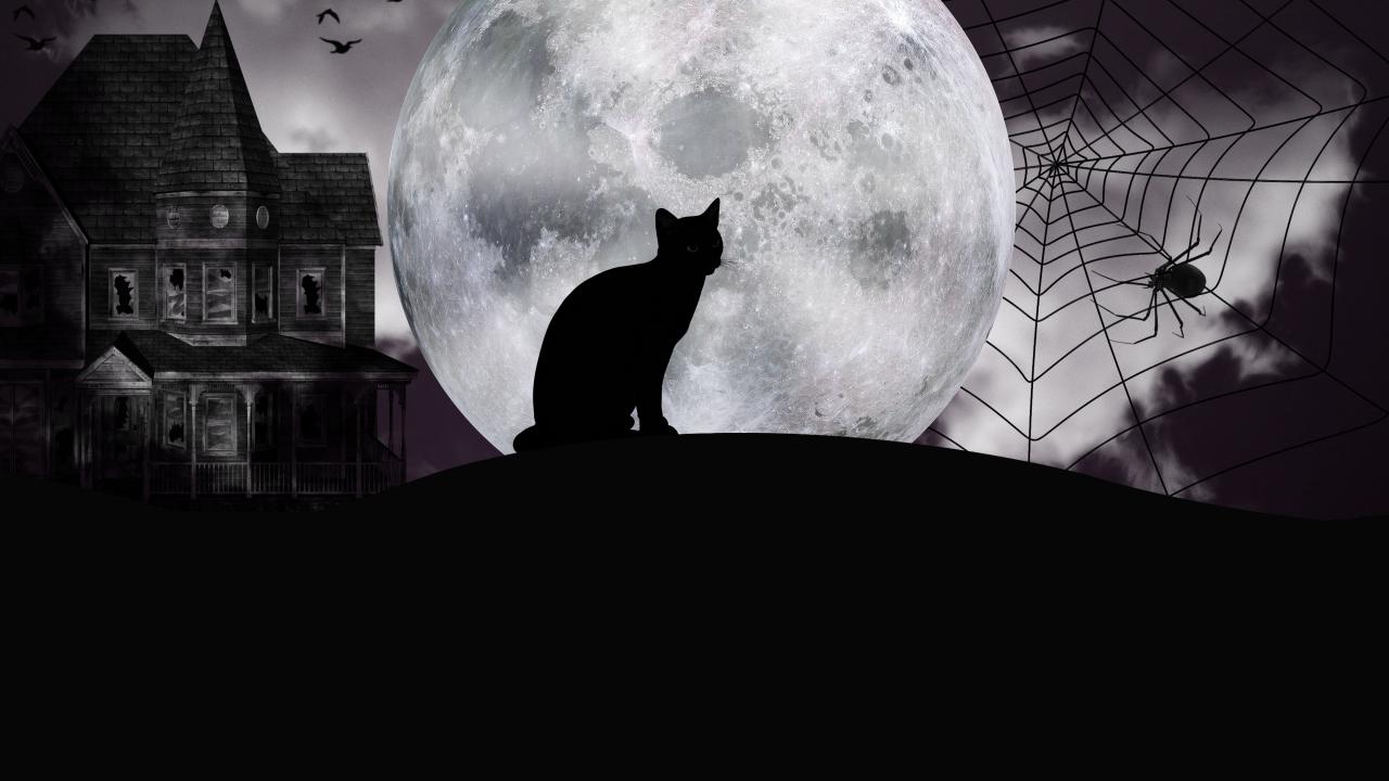 Wallpaper Black cat on the background of the big moon on Halloween