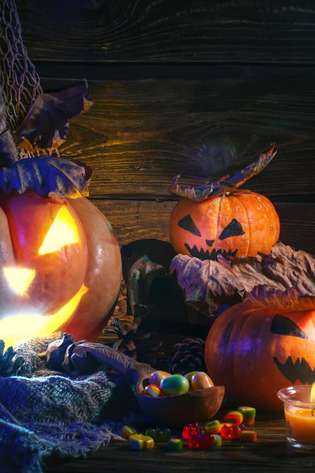 Wallpaper Halloween pumpkins on the table