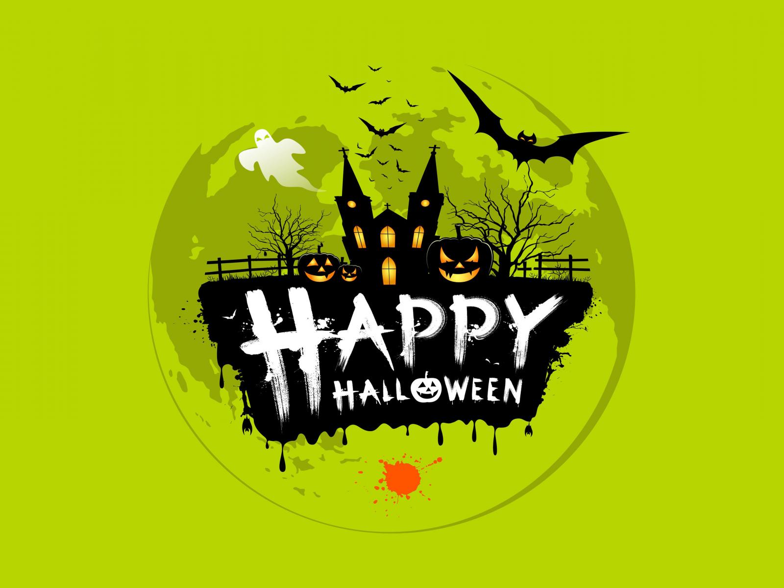 Wallpaper Big moon with inscription Happy Halloween