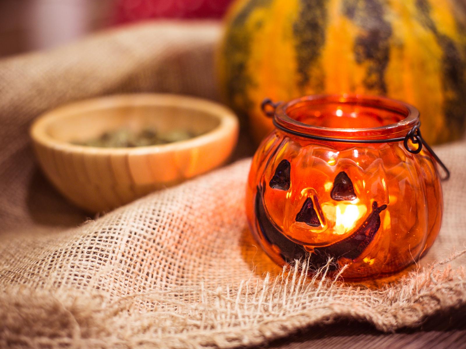 Wallpaper Lamp pumpkin on the table for the holiday Halloween