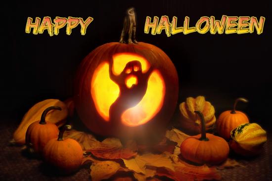 Wallpaper Little children in Halloween costumes with big pumpkins