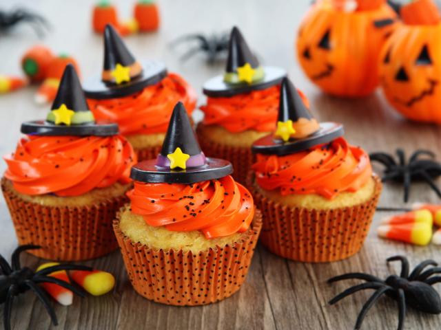 Wallpaper Halloween witch cupcakes with spiders