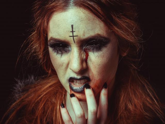 Wallpaper Girl with Halloween makeup on a black background