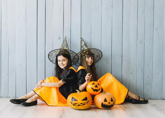 Wallpaper Two little girls in Halloween costumes