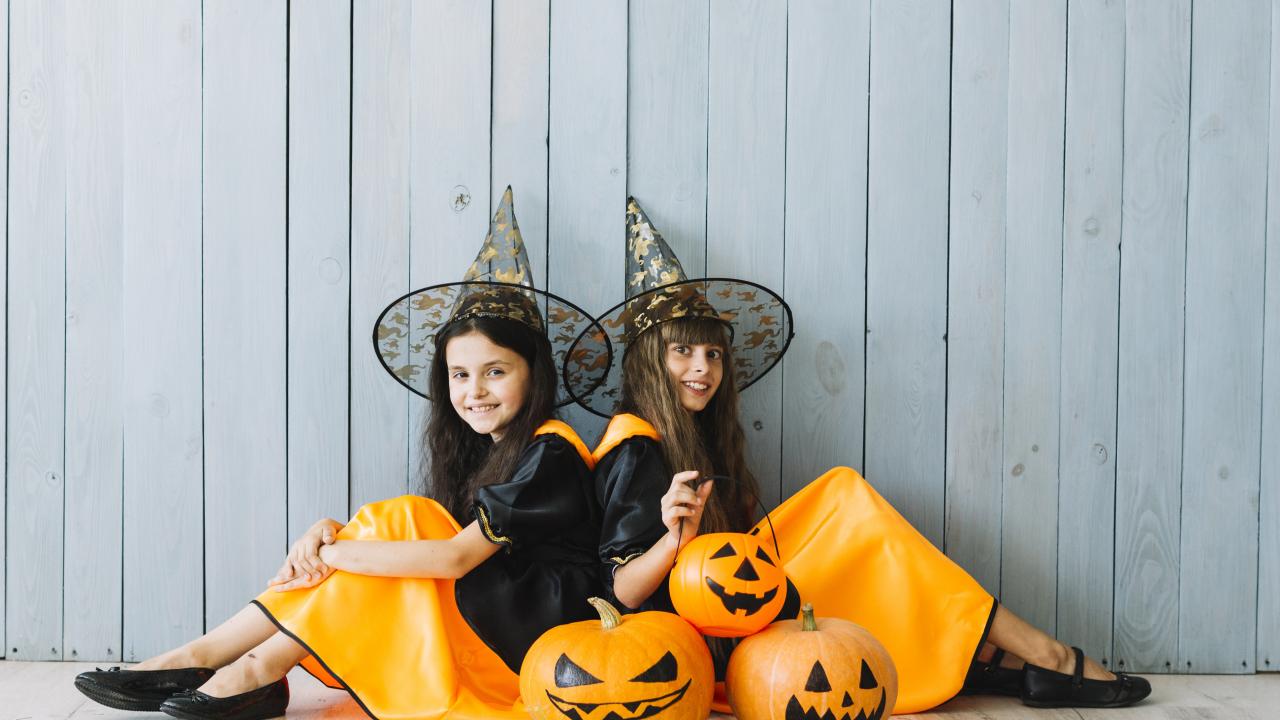 Wallpaper Two little girls in Halloween costumes