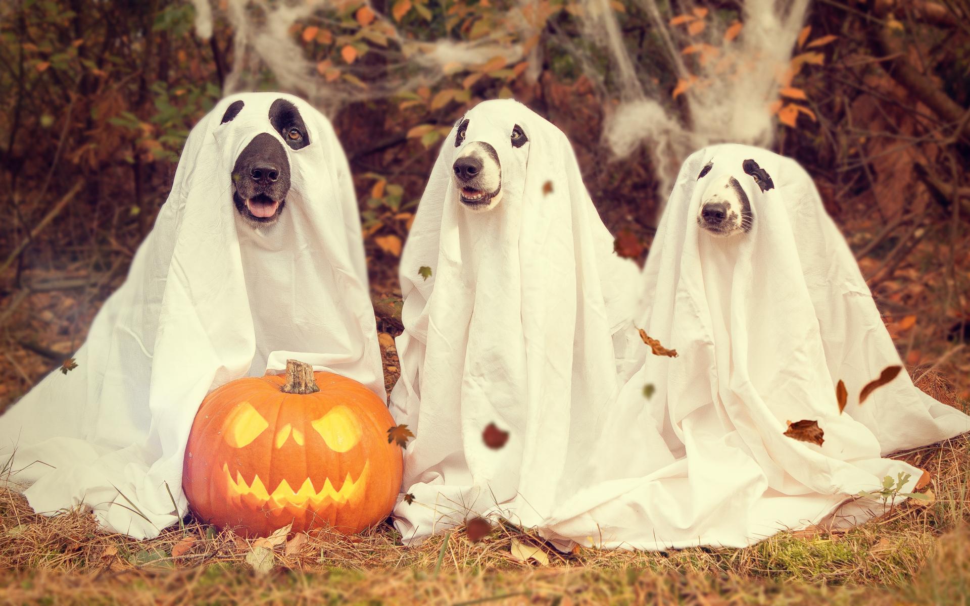 Wallpaper Three dogs in Halloween costumes