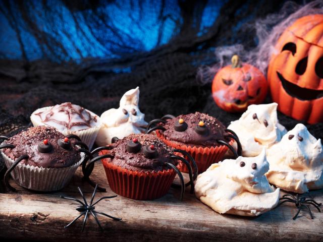 Wallpaper Cupcakes with cream and decorations for Halloween