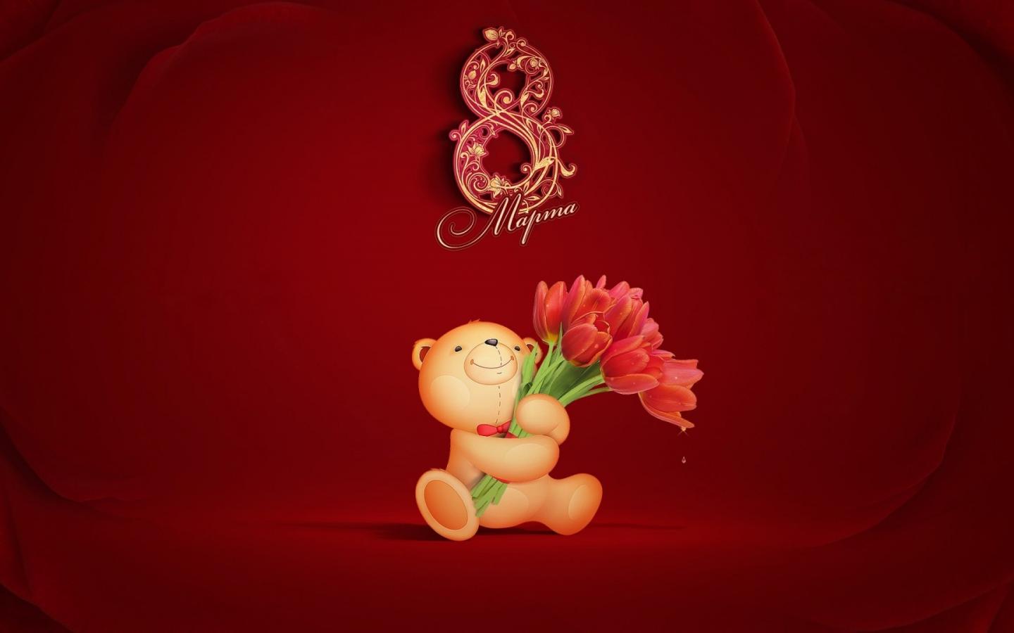 Wallpaper Bear and tulips on March 8