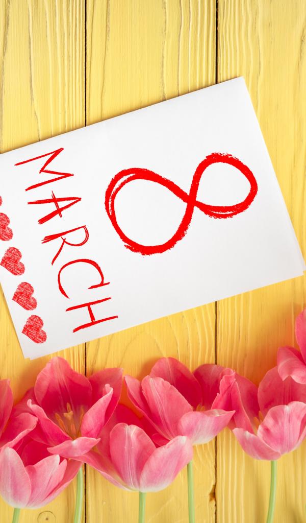 » Wallpaper Pink tulips and a card for March 8