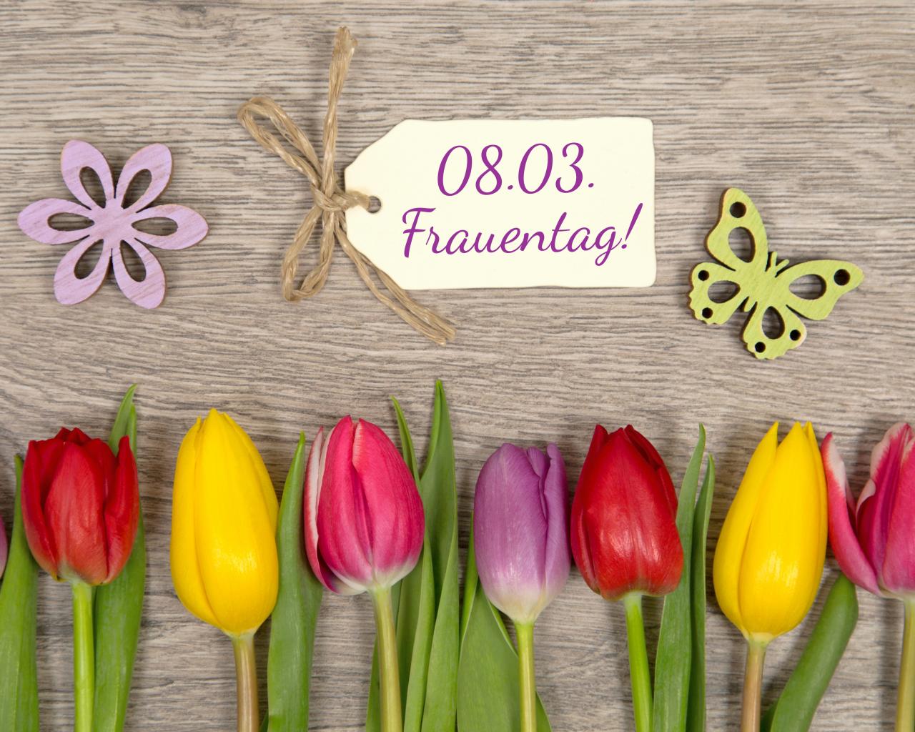 Wallpaper Bouquet of multicolored tulips on March 8