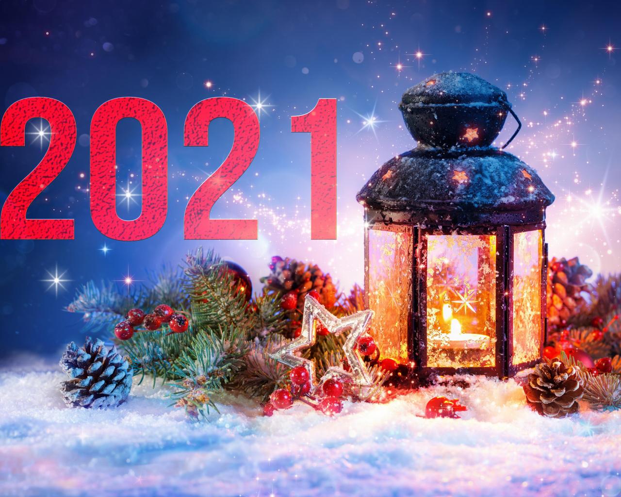 Wallpaper Bright lantern with spruce branch for New Year 2021