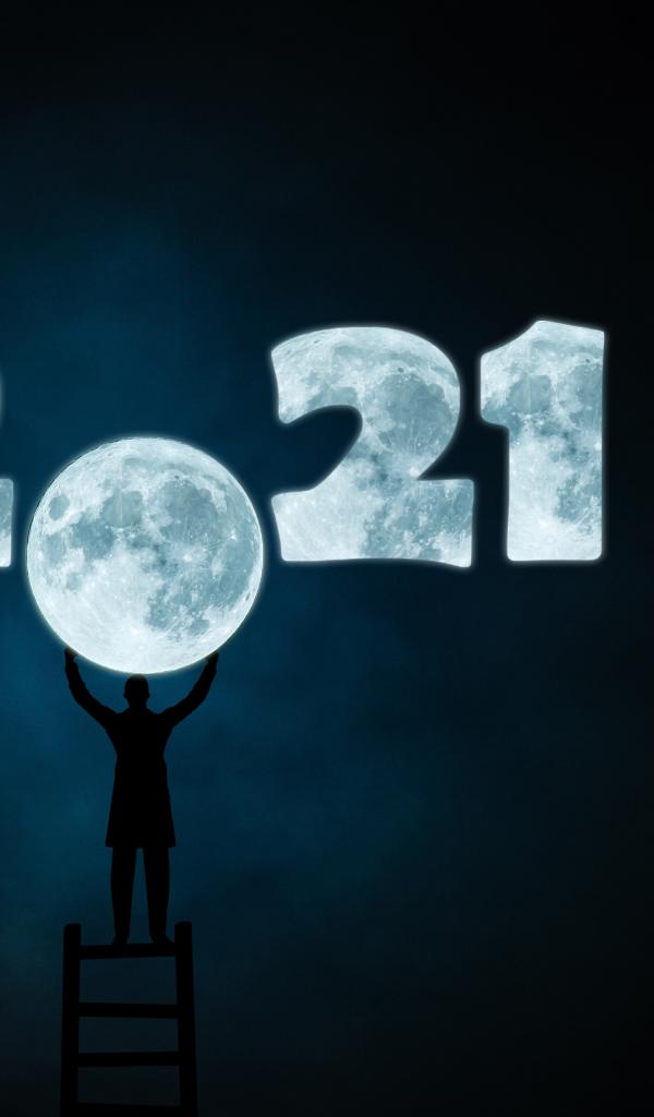 Wallpaper Man holds the moon in the sky with the number 2021