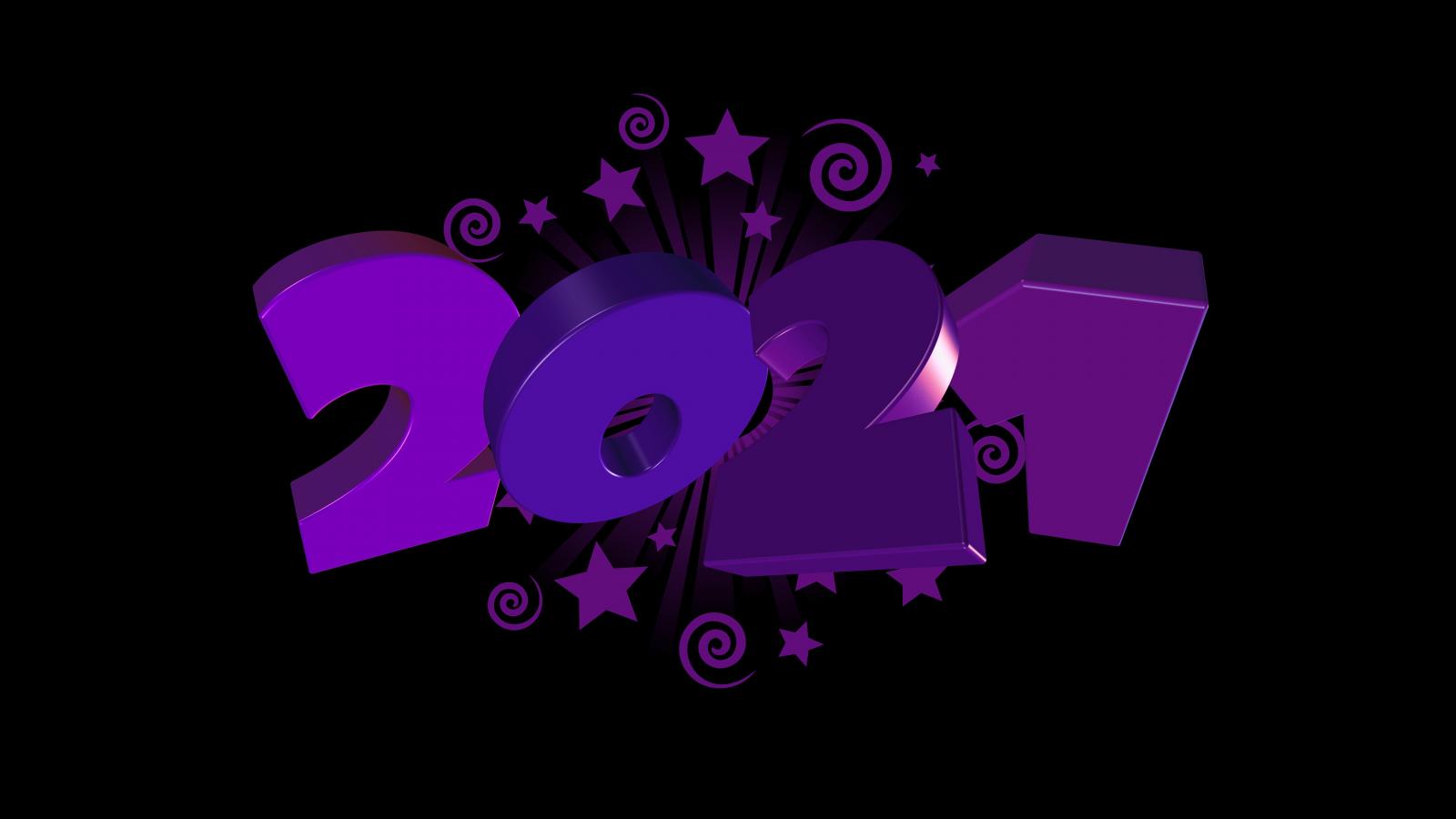 Wallpaper Purple numbers for New Year 2021 on a black background