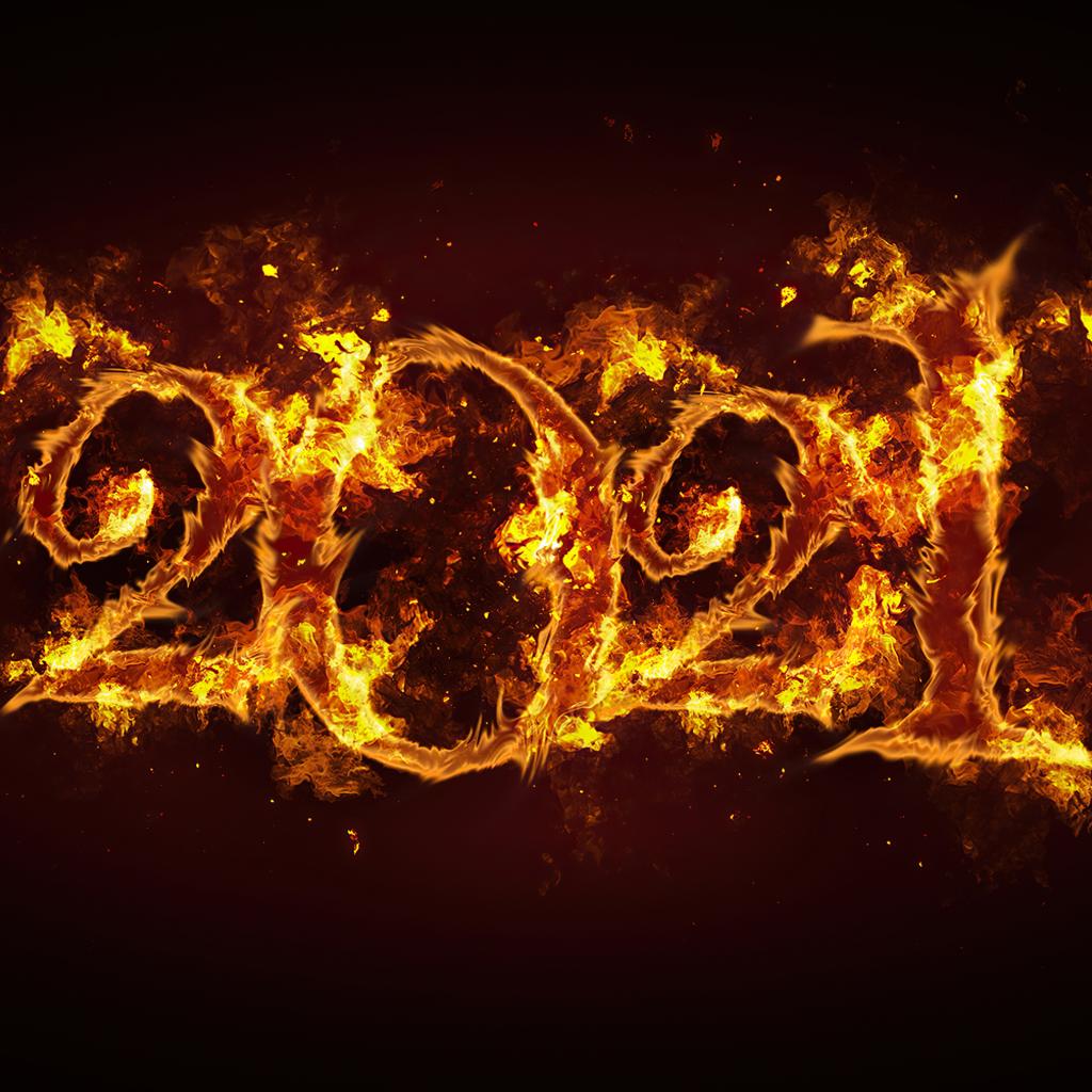 Wallpaper Fiery numbers 2021 on black background
