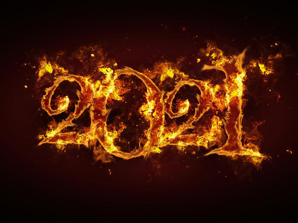 Wallpaper Fiery numbers 2021 on black background