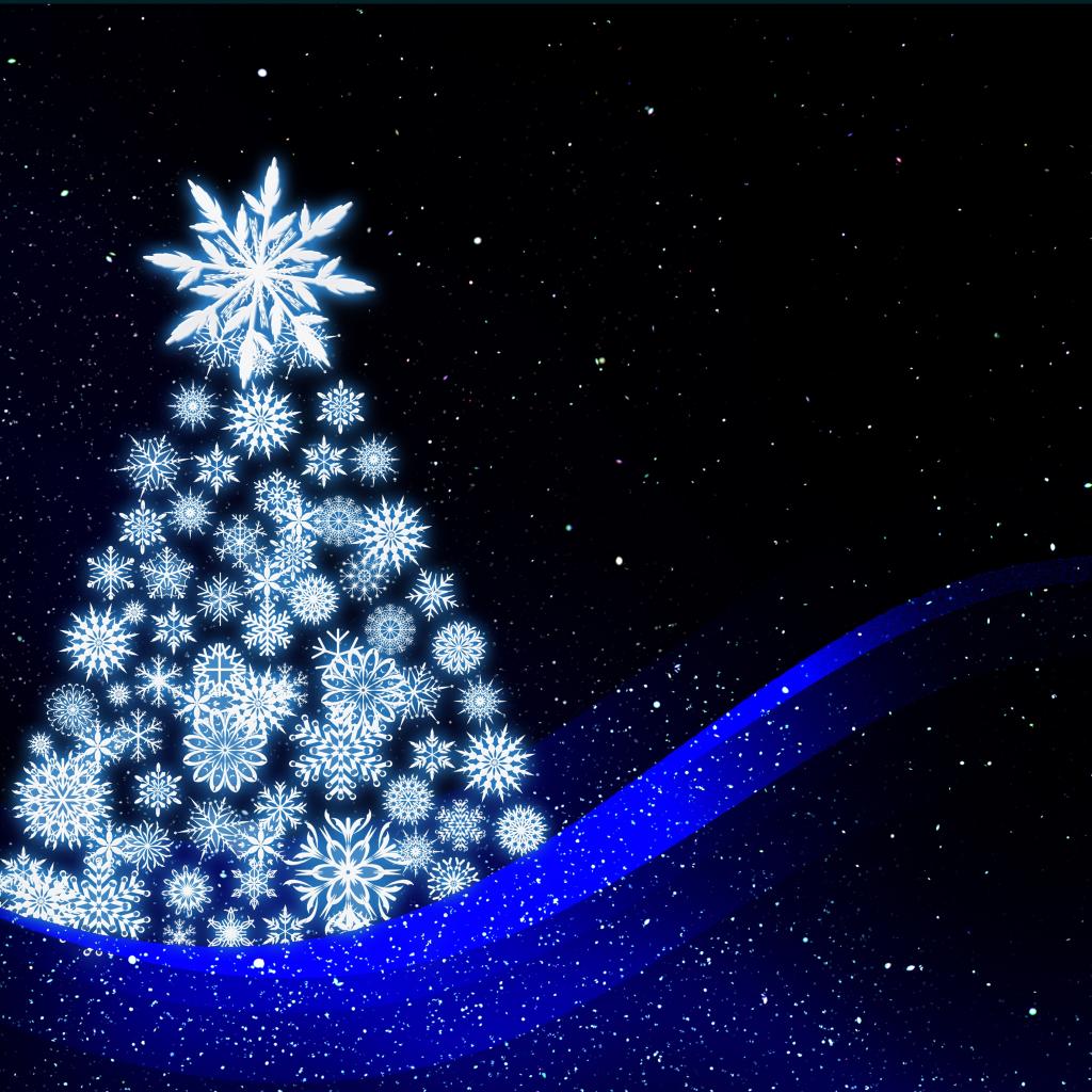 Wallpaper Christmas tree of white snowflakes art