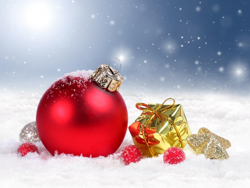 Wallpaper Christmas tree ball and small gift box on Christmas