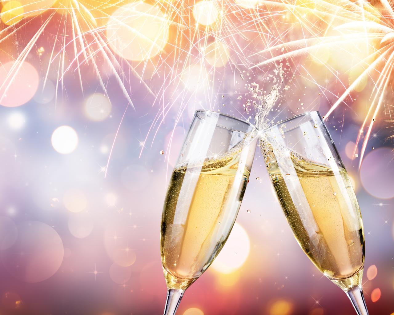 Wallpaper Two glasses with champagne under a festive salute