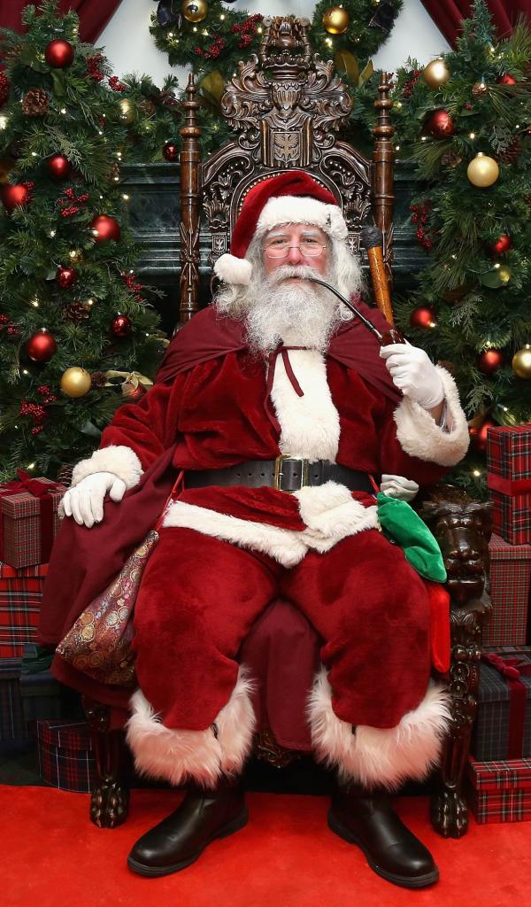 Wallpaper Santa Claus smokes a pipe while sitting in a chair