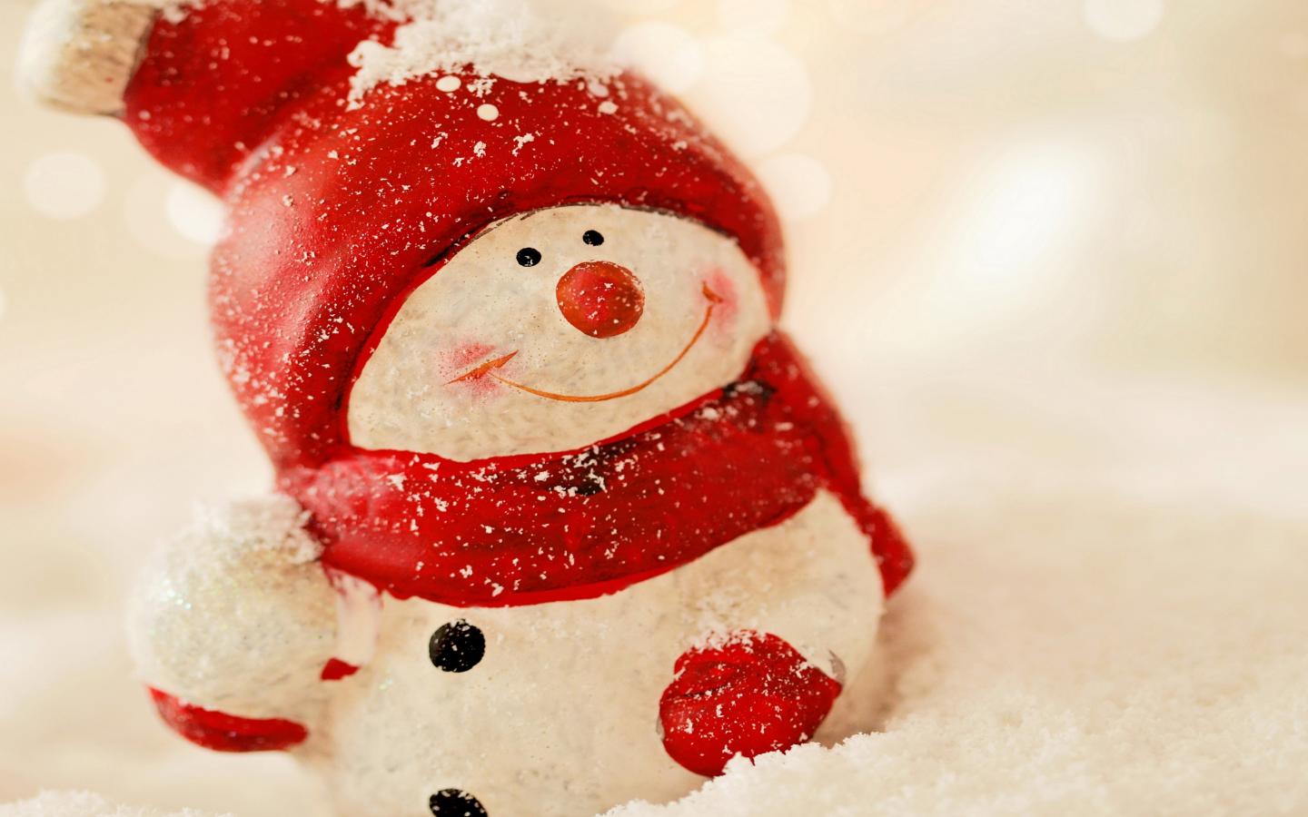 Wallpaper Toy snowman in a red hat for the new year 2018